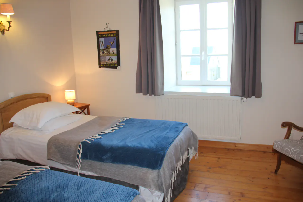 Chambre au premier étage. 2 lits simples 90x200. Salle d'eau et WC privés. Entrée indépendante. Linge de toilette et linge de lit inclus. Petit plateau de bienvenue (thé, café, infusions). Équipement bébé possible.